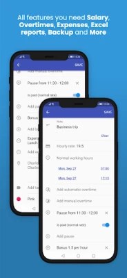 Joustavuus on avainasemassa. Voit seurata aikaa tuntiperusteisesti tai kiintein jaksoin, hyödyntää malleja toistuviin asetuksiin ja määritellä eri vuorotyyppejä tarpeidesi mukaan. Työskenteletpä sitten pienessä tiimissä tai yksin, tämä sovellus mukautuu vaivattomasti erilaisiin työtapoihin. Voit helposti lisätä huomautuksia, tunnisteita tai visuaalisesti lajitella tapahtumia värien avulla pitääksesi kirjaa kaikista tärkeistä yksityiskohdista. Lisäksi voit hallita taukoja, olivatpa ne sitten palkallisia tai palkattomia, sekä lisätä kertaluonteisia bonuksia tai kuluja.