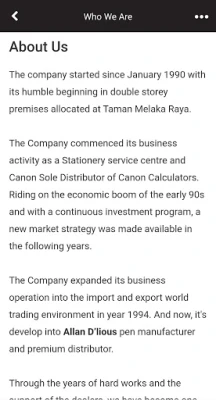 Allan D'lious on jo vuosikymmenten ajan symboloinut laadun ja tarkkuuden perinnettä, alkaen vaatimattomasta paperitavarapalvelusta ja kehittyen merkittäväksi toimijaksi Aasian markkinoilla. Yritys on sittemmin kasvanut yhdeksi johtavista premium-kynien ja lahjatavaroiden jakelijoista Malesiassa, Sabahissa, Sarawakissa, Indonesiassa ja Vietnamissa, tarjoten asiakkailleen vain parasta. Allan D'lious-sovellus on suunniteltu tuomaan tämä rikas historia ja laaja tuotevalikoima suoraan kätesi ulottuville, tarjoten saumattoman sillan ainutlaatuiseen tarjontaamme ja dynaamiseen yritykseemme.