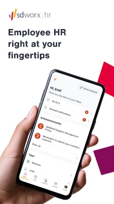 Sovellus pitää sinut myös ajan tasalla ja antaa kontrollin tärkeisiin henkilökohtaisiin tietoihin. Voit vaivattomasti päivittää omat yhteystietosi, tarkistaa viimeisimmät palkkalaskelmasi ja hakea kollegojen yhteystietoja organisaatiostasi. Lisäksi saat välittömät ilmoitukset kaikista tärkeistä SD Worx HR -viesteistä suoraan laitteeseisi. On hyvä huomioida, että SD Worx Daily -sovelluksen käytettävissä olevat palvelut määräytyvät sen mukaan, mitä SD Worx HR -palveluita yrityksesi on ottanut käyttöön.