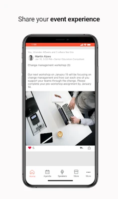 Sovelluksen avulla suunnittelet päiväsi vaivattomasti oman, personoidun aikataulusi pohjalta, tutustut vaikuttaviin puhujiin kattavien esittelyjen kautta ja verkostoidut vaivattomasti muiden osallistujien kanssa hyödyntäen kattavia osallistujaluetteloita. Navigoi tapahtuma-alueella interaktiivisten karttojen avulla ja pysy ajan tasalla kaikista käytännön järjestelyistä, kuten paikka- ja logistiikkatiedoista. Monikielinen tuki tekee tiedon saatavuudesta helppoa kaikille osallistujille, riippumatta heidän kielitaustastaan.