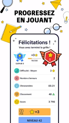 Yli 4000 tason ansiosta Mots Fléchés Pro: Mots Croisés pitää huolen siitä, ettei sanallisia haasteita lopu koskaan. Paranna oikeinkirjoitustaitojasi ja laajenna ranskankielistä sanavarastoasi jokaisen edistyvän tason myötä. Mikäli jumiudut vaikeaan pulmaan, käytössäsi on avuliaita vihjeitä, jotka auttavat sinua löytämään oikean kirjaimen ja jatkamaan matkaasi. Tässä iscool-e:n luomassa pelissä edistyt Bronze-tasolta aina Legendaan asti, keräten ainutlaatuisia merkkejä matkan varrella. Valmistaudu sukeltamaan sanatehtävien perimmäiseen maailmaan, jossa jokainen löydetty sana vie sinut lähemmäs kieliopillista täydellisyyttä ilman stressiä tai aikarajoituksia.