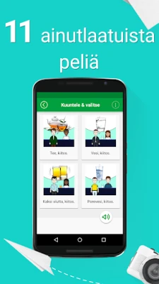 Mikä tekee Opi ruotsia -kokemuksesta todella ainutlaatuisen? Unohda jatkuva verkkoyhteys – voit harjoitella missä ja milloin vain, ilman internetiä. Jokainen 5 000 ilmauksesta sisältää tarkat äänitteet syntyperäisiltä puhujilta sekä foneettiset transkriptiot, joten opit ääntämään sanat juuri oikein ja luontevasti. Kielitaitosi kehittyy huomaamatta innovatiivisten peliemme parissa; tarjolla on 11 erilaista hauskaa peliä, jotka haastavat ja kehittävät kuuntelu-, kirjoitus- ja puhetaitojasi interaktiivisesti. Jäsennelty oppimispolku neljällä eri tasolla – aloittelijasta asiantuntijaan – ja 20 aihealueen yli 145 alakategoriaa varmistavat, että opit oikeat ilmaisut oikeisiin tilanteisiin, aina lämpimistä tervehdyksistä liike-elämän keskusteluihin.