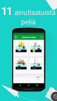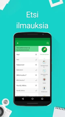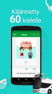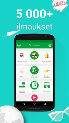 Suomen kielen kurssi auttaa sinua oppimaan suomea sujuvasti hauskalla tavalla. Tutustu 5 000 yleiseen keskusteluilmaukseen, harjoittele puhumista ja ääntämistä omalla kielelläsi (60 kielellä). Opi nopeasti missä ja milloin vain, myös offline-tilassa.